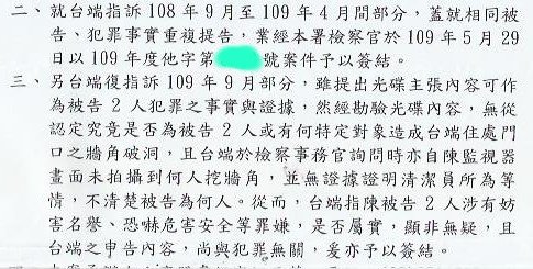 因為: (1) 告訴人沒有提出清潔員與總幹事犯行證據 (2) 告訴人申告內容『與犯罪無關』 |