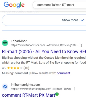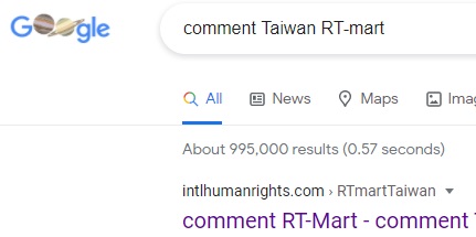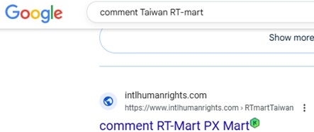 pic.: No.1 "comment RT-mart Taiwan" on Google, 2022-2-7, 2021-10-7, 2021-9-22, 2021-8-19, "comment Taiwan RT-Mart" on Google, 2021-10-7, 2021-9-22, 2021-7-27, 1-24-2021, 12-22-2020