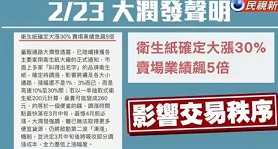 RT Mart jacks up prices of tissue paper by fake news, got NT3.5 million fine penalty (公平會)