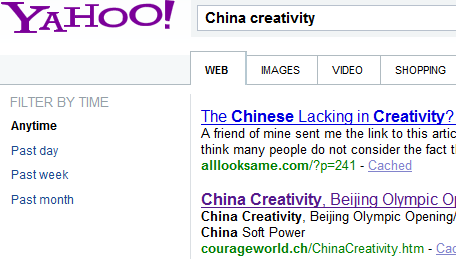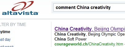 Ranking No.1 on altavista by keyword "comment China creativity"
