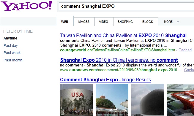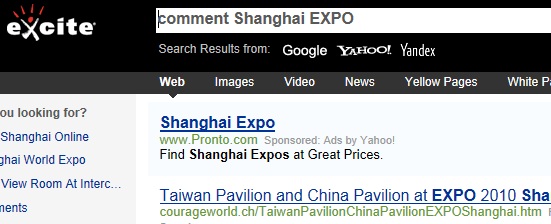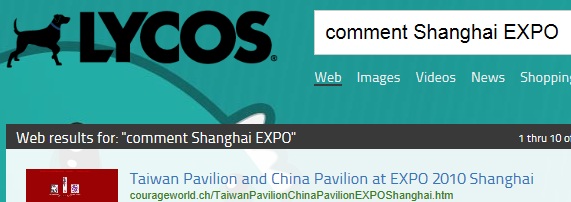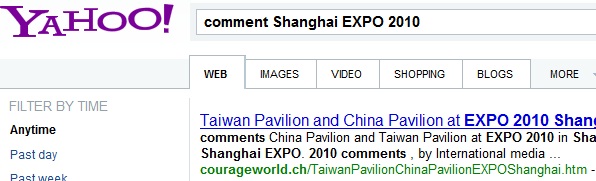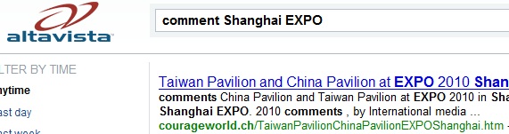 No.1 on AltaVista by keyword "comment Shanghai EXPO" |
