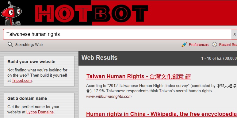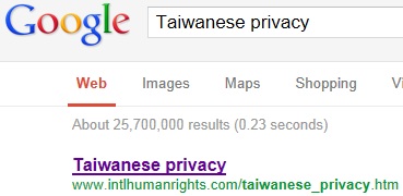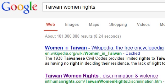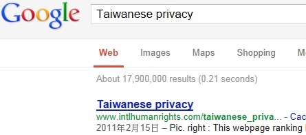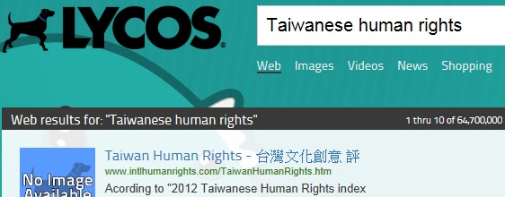 No.1 "Taiwan human rights" on google at April 15, 2013 |