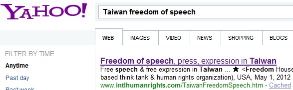 Ranking No.1 on Yahoo by keyword "Taiwan freedom of speech"