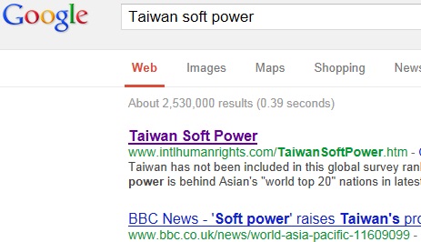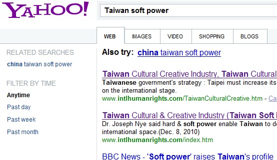 Ranking No.1and 2 on yahoo by keyword "Taiwan soft power"