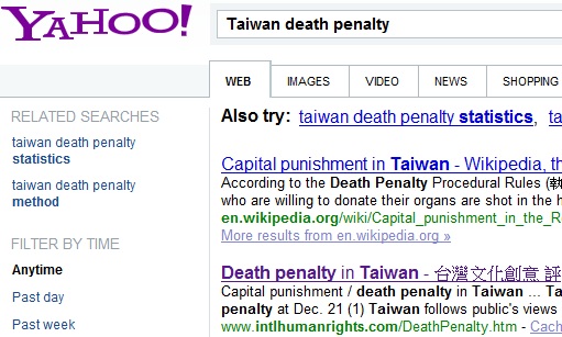 Ranking No.2 on yahoo by keyword "Taiwan death penalty"