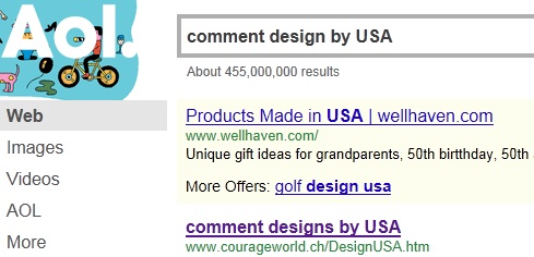 Ranking No.1 on AOL by keyword "comment design by USA"
