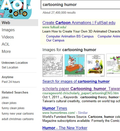 Ranking No.1 on AOL by keyword "Cartooning humor" (the top one is ad.)
