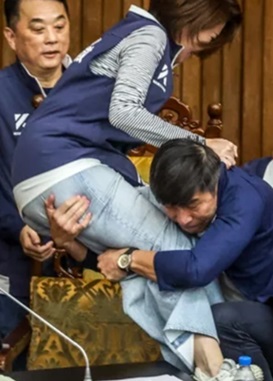 台灣立法院 ¥ß©e們互相推擠、扭打、毆打,