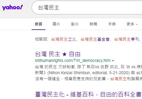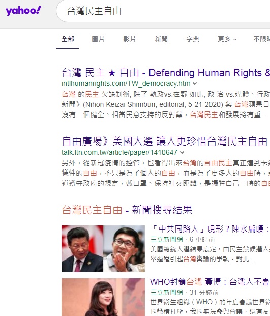 No.1 "Taiwan democracy"(¥xÆW¥Á¥D)  on Bing, 7-12-2020