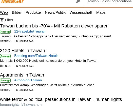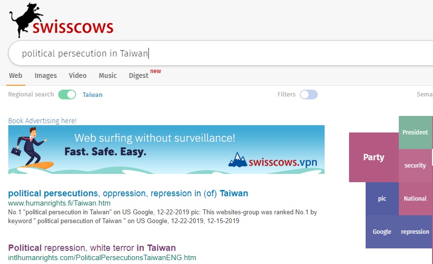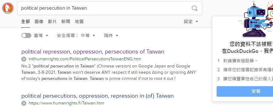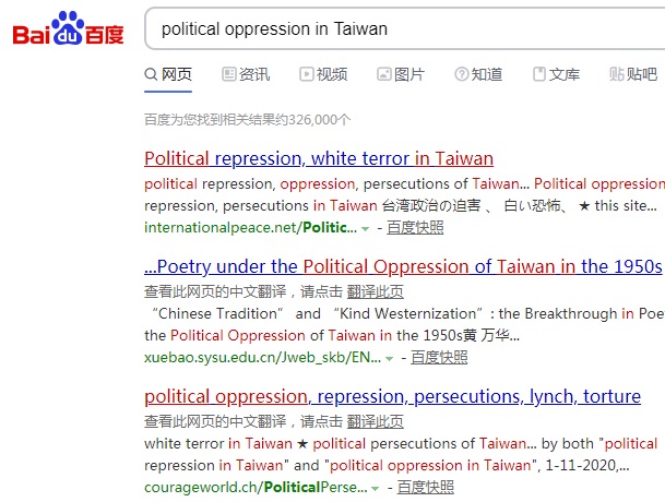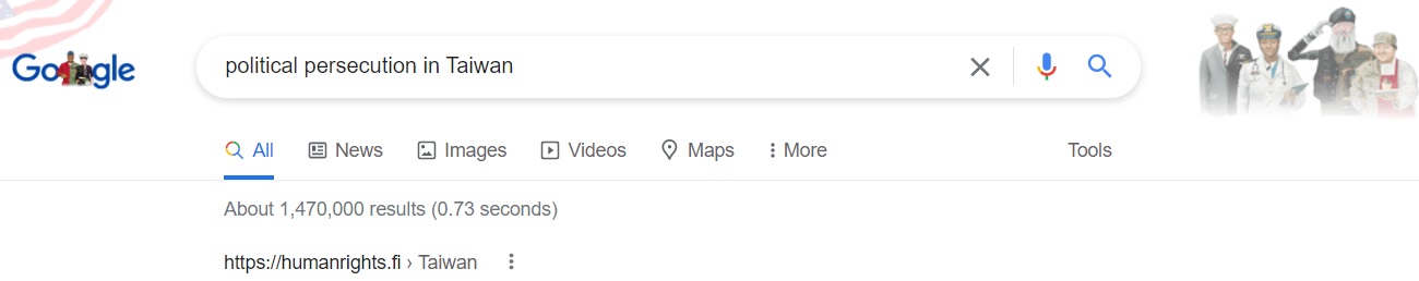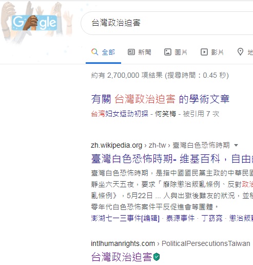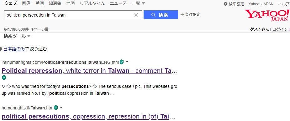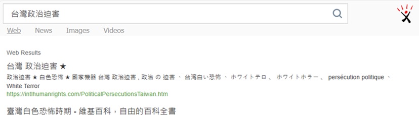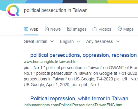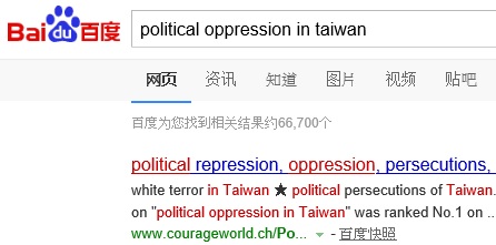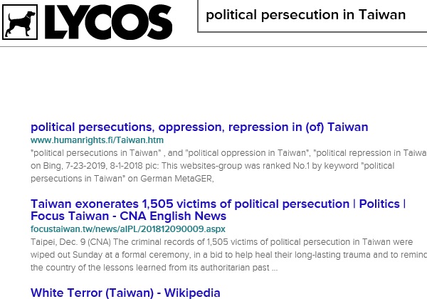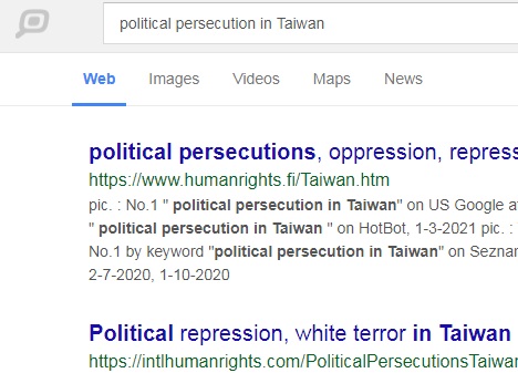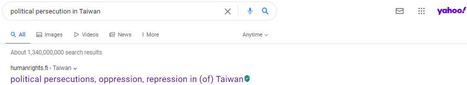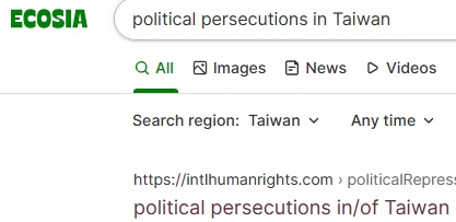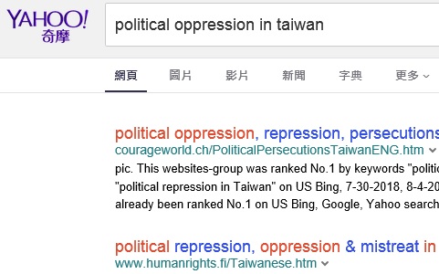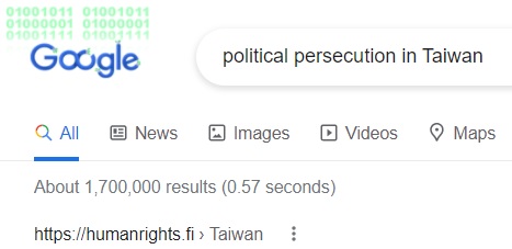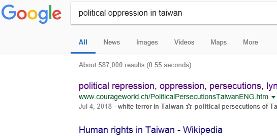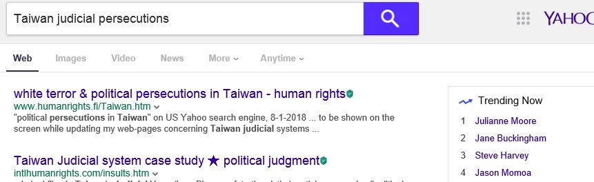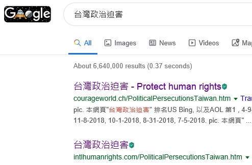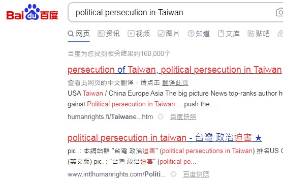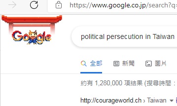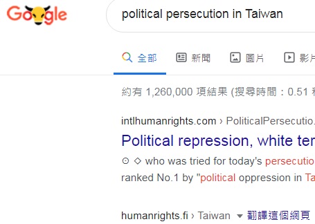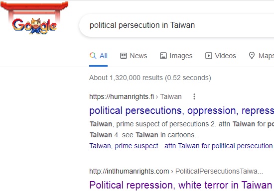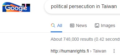 No.1 "political persecution in Taiwan" on US Google,