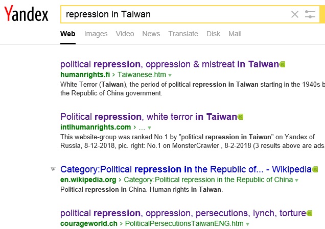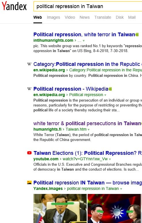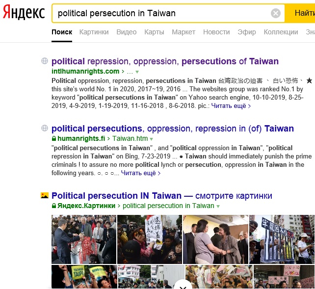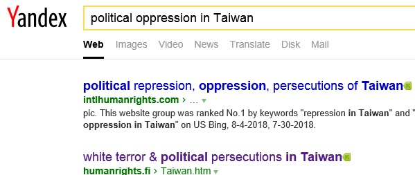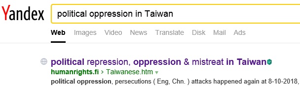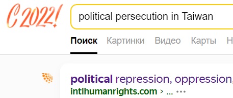 No.1 "political persecution in Taiwan" on Yandex
