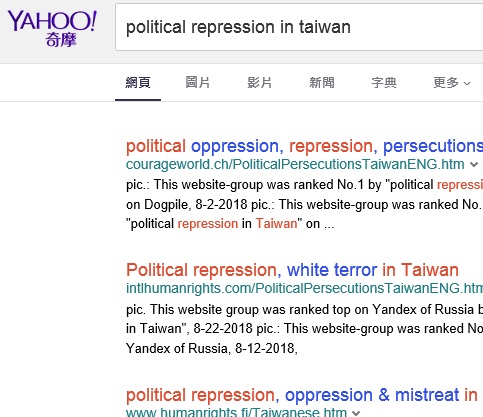 The websites group ranks No.1 "political persecutions in Taiwan" on Yahoo , 2025-12-24, 2025-2-28