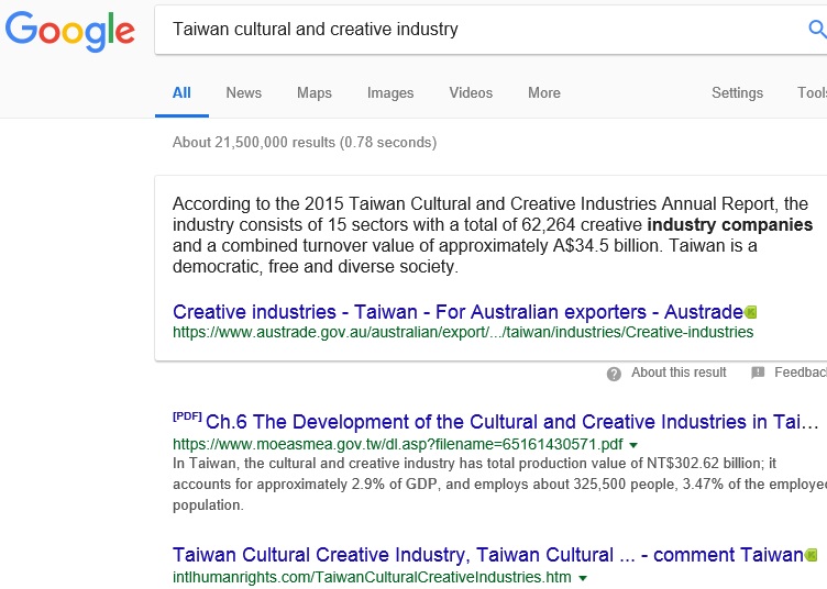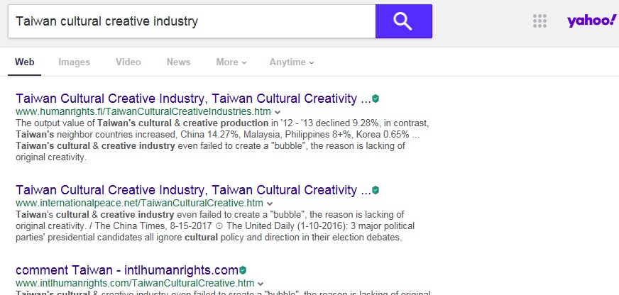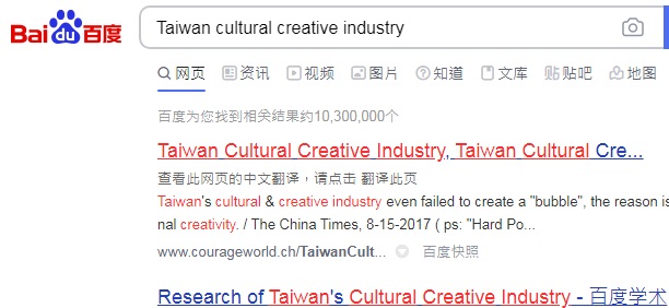 . The output value of Taiwan's cultural & creative production in '12 - '13 declined 9.28%, in contrast, Taiwan's neighbor countries increased, China 14.27%, Malaysia, Philippines 8+%, Korea 0.65% ... Taiwan's cultural & creative industry even failed to create a "bubble", the reason is lacking of original creativity. / The China Times, 8-15-2017 Apple Daily, editorial, 10-3-2020: Taiwan president Tsai said "The power of design is the nation's power". From today on, "design" is no longer just an actor, but a "leading actor". Hope so ! https://tw.appledaily.com/headline/20201003/Y3KEHXF4CRDRLJNNY2ZOJUMZ3I/ |