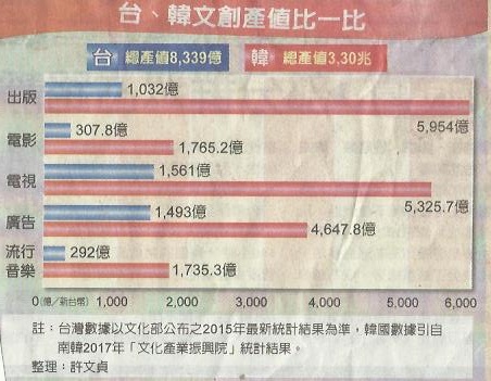 value of Taiwan's cultural & creative production was far behind of that