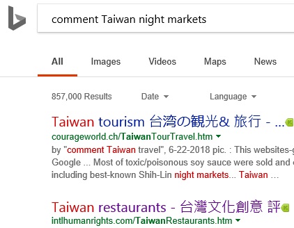 pic.: "評論台灣夜市"排名Bing  第1, 9-3-2018
