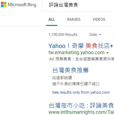 圖 : Ranking No.1 on Yahoo by keyword "評 台灣美食",