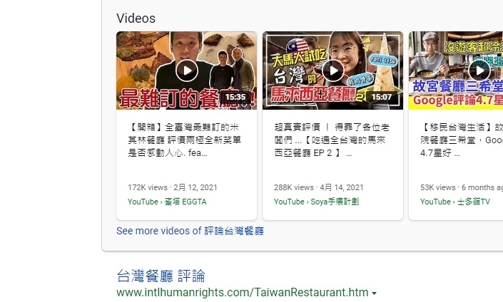 pic. :     "評論台灣餐廳" 排名US Google第一, 2024-8-31, 2024-8-8, 2024-5-16, 2024-5-1, 2023-9-4 (Eng. version); No.1 "comment Taiwan restaurants" on US google, 2024-8-31, 2024-5-1, 2023-9-4, 2022-3-23,  2022-1-4, 2021-9-18;  評論台灣餐廳排名US Google 第2,  2025-5-8, 2023-7-1, 2023-3-30, 2023-2-11, 2022-6-12