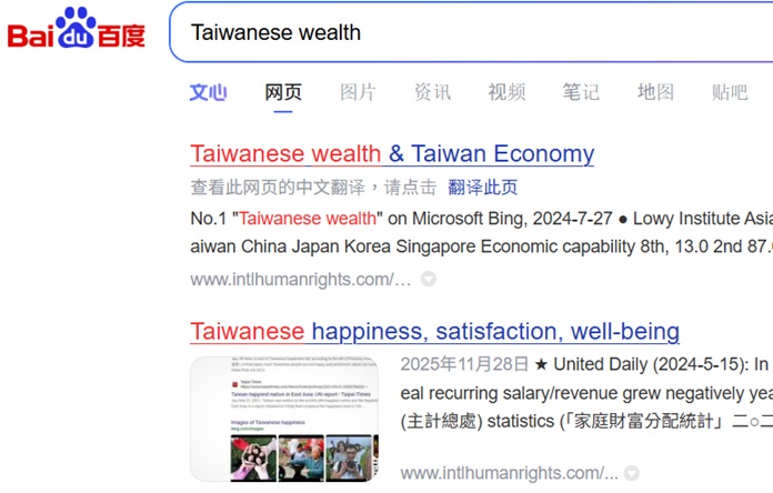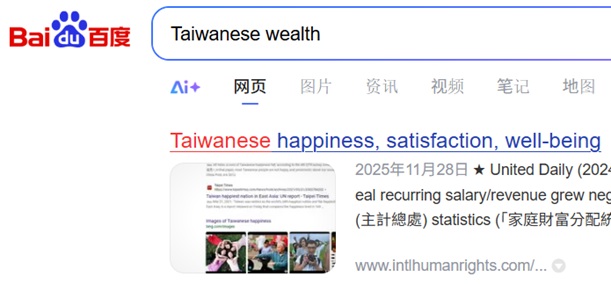 No.1 "Taiwanese wealth" on Baidu, 2026-2-9, 2026-1-20 ¡@ ¡@ |