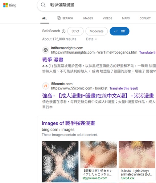 "戰爭強暴漫畫" 排名美國Bing第1, 2026-1-10, 2025-10-21,  2025-9-24