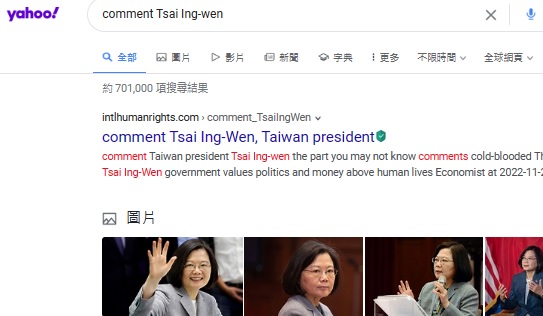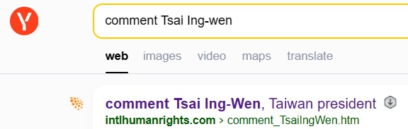 pic.: No.1 "comment Tsai Ing-wen" on Yandex of Russia, 2025-6-25, 2024-12-25, 2024-11-29, 2024-8-8, 2024-5-13, 2024-2-6, 2024-1-1, 2023-11-20; pic.: No.1 "comment Taiwan president" on Yandex of Russia, 2024-12-25, 2024-8-8, 2024-5-13, 2024-2-6, 2024-1-1, 2023-5-14, 2023-4-30, 2023-4-21, among top ranks at 2024-11-29