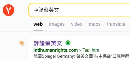No.1 "comment Tsai Ing-wen" on Ecosia (Germany), 2024-8-8, 2024-7-22, 2024-5-20, 2023-3-10; No.1 "comment Taiwan president" on Ecosia (Germany), 2024-8-8, 2024-5-20, 2023-3-10