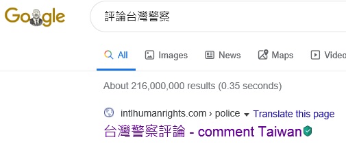 評論台灣警察" 排名Google Taiwan, Google Japan 2, 2025-5-24, 2025-4-12; No.1 at 2024-2-1, 2024-1-8, 2023-11-11, 2023-11-1, 2023-9-30, 2023-7-8, 2023-6-21, 2023-5-4, 2023-4-26, 2023-4-6,