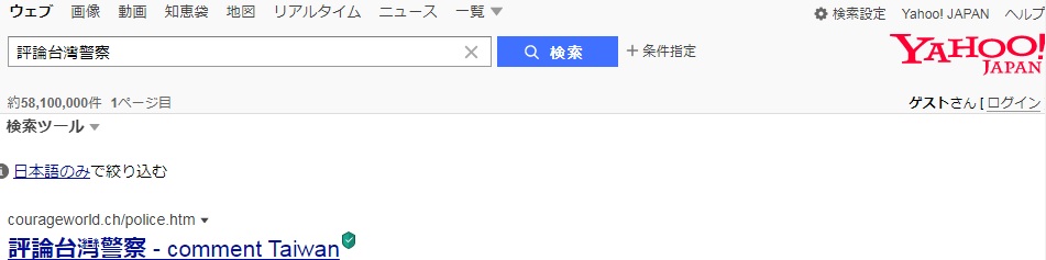 pic. above: 本網站群 "評論台灣警察" 排名US Yahoo第1, 2023-4-6, 2023-3-11, 2022-11-7, 2022-10-1, 2022-9-6, 2022-7-3, 2022-6-16, 2022-1-28, 2021-11-23, 2021-6-14, 2021-5-2, 2021-4-18, 1-25-2021, 11-11-2020, 9-24-2019; No.2 at 2024-2-1, 2023-2-6, 2022-6-16