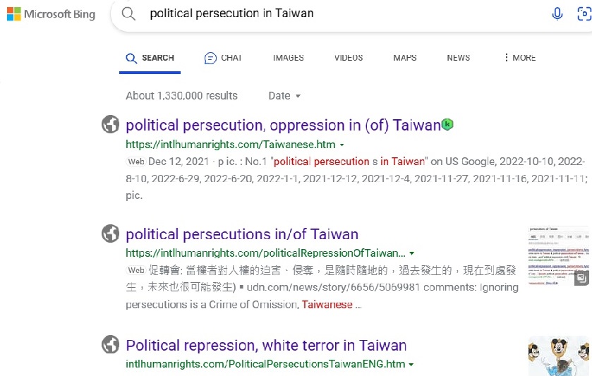 Taiwan's persecutions has been ranking No.1 |