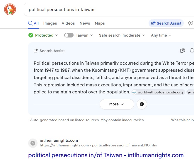 In my case, Taiwan seemingly has