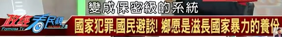 | pic.: sort of similar repression story ― FTV, "政經看民視", 7-26-2018, The new form murder - actively lead and organize the masses around in political struggle, trying to beat victims hardly in broad daylight 2018.7.26【政經看民視】 ps: Yu Chi-Chung (CTN founder), Yuan-Tseh Lee (Nobelpriset Chemistry), 陶百川 etc had experienced "encirclement & suppression" by secret intelligence system before |