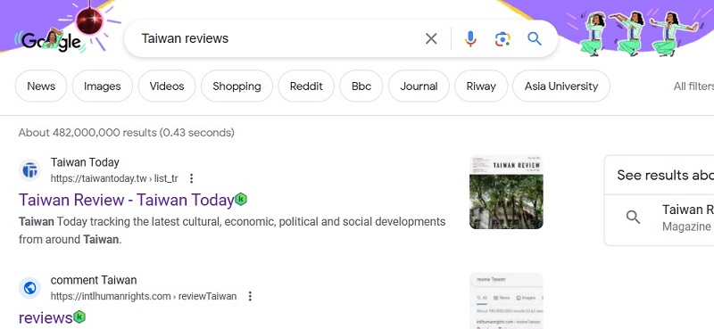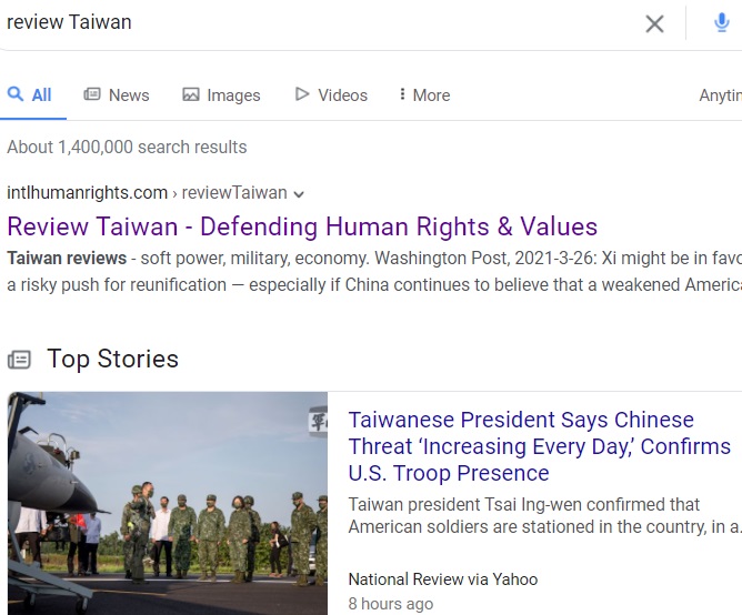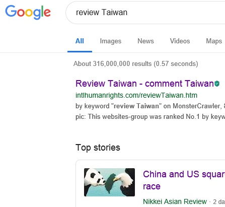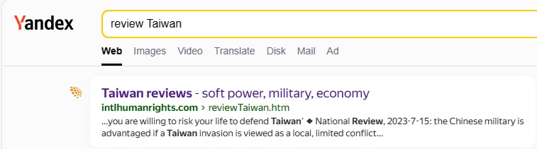 "review Taiwan" on Yandex,